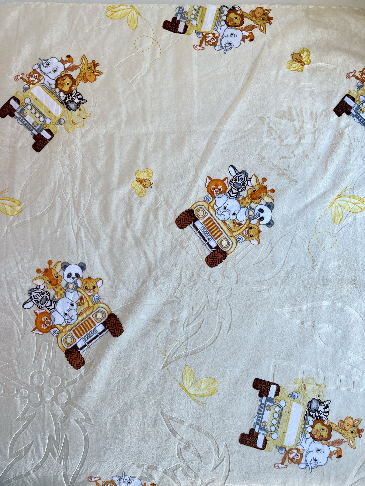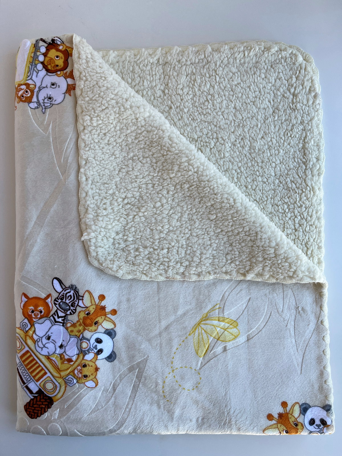Estampadas. De un lado es de plush. Y del otro de corderito. Color natural