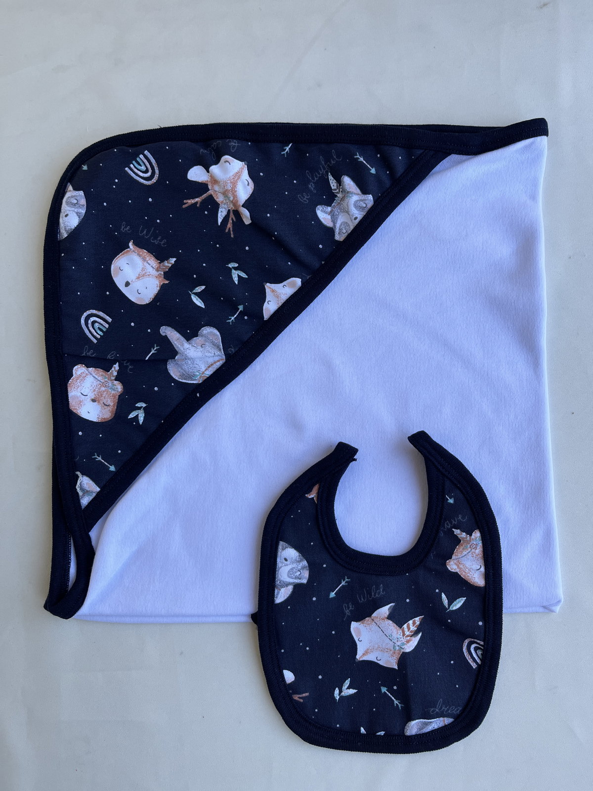 De algodon. Con capucha y babero